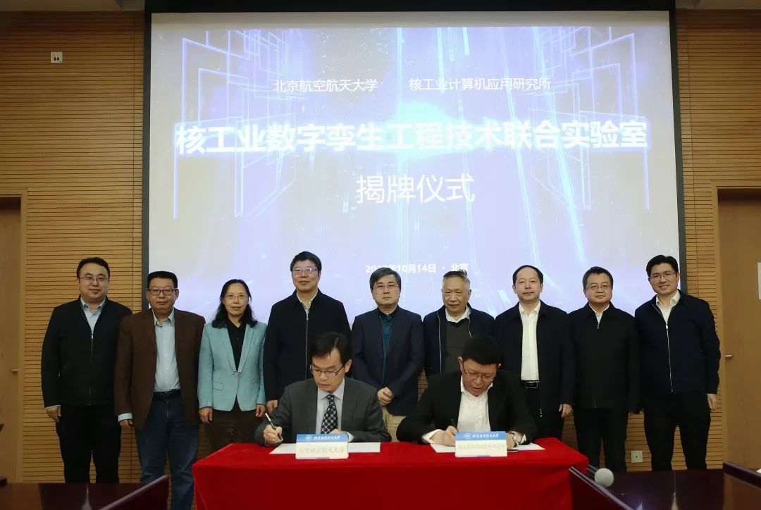 2022年10月14日,我校在新主楼会议中心举行中核集团核工业计算机应用研究所-北京航空航天大学核工业数字孪生工程技术联合实验室签约及揭牌仪式。中核集团科技委主任叶奇蓁院士,中核集团总经理助理、首席网络安全官庄火林,中核集团科技质量与信息化部副主任荣健,中核战略规划研究总院院长罗清平,中核集团核工业计算机应用研究所所长姜礼瑞,北航副校长刘树春,校长助理、科研院院长杨立军,党委常委、宣传部部长李建伟等出席活动。会议由杨立军主持。