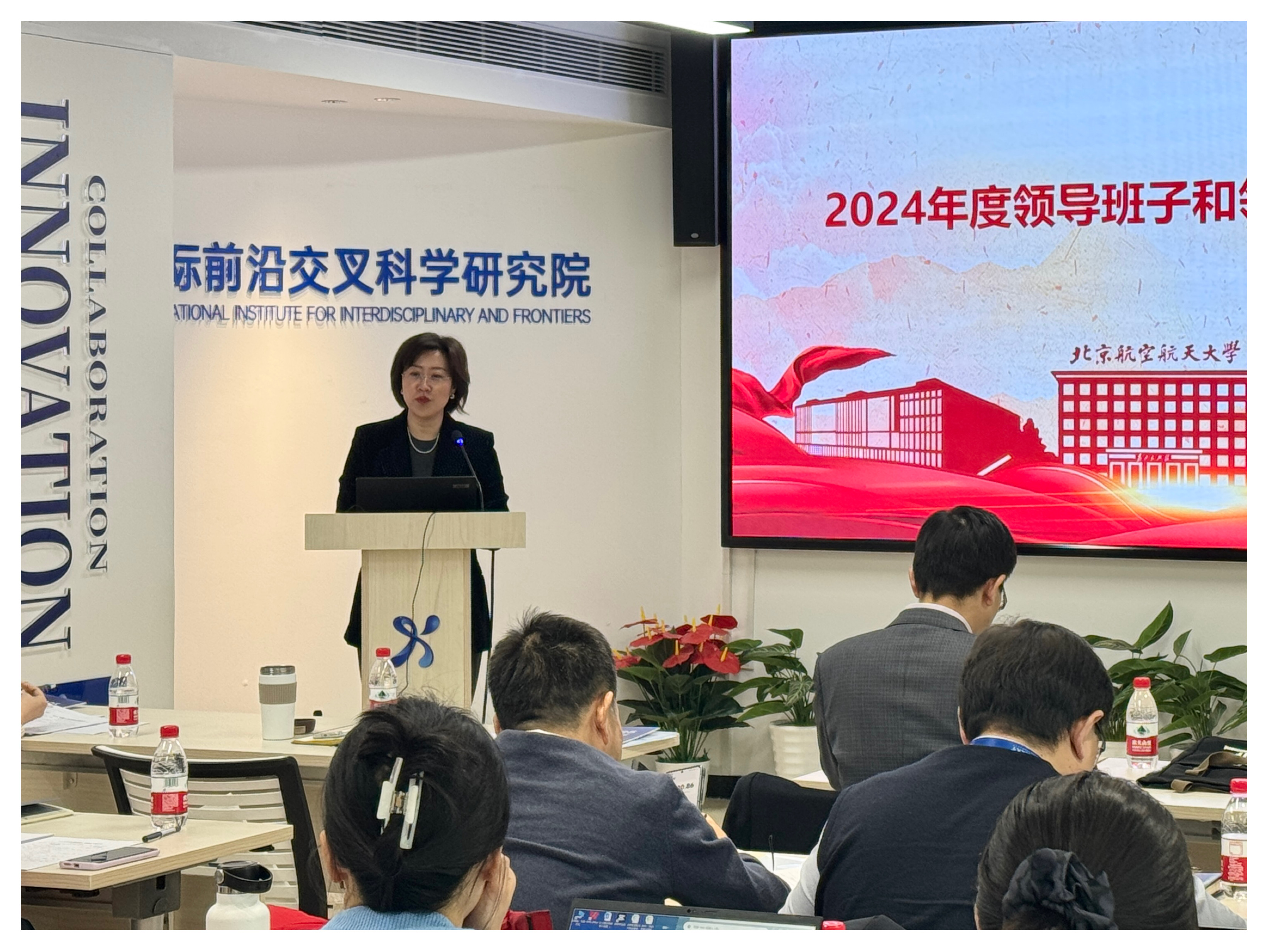 会议首先进行了365(VIP)英国上市公司领导班子和领导人员述职述廉。陶飞院长代表领导班子对2024年365(VIP)英国上市公司整体工作情况做出了全面回顾和总结,他强调,2024年365(VIP)英国上市公司人才队伍不断壮大,标杆中心建设稳步推进,高水平科研成果开始产出,教育部首批学科交叉中心建设成效显著,交叉氛围营造愈发浓厚,国际化合作交流持续扩大,服务管理水平不断提升,各方面建设都取得了瞩目的成绩,2025年是365(VIP)英国上市公司的质量发展年,全体教师要立足岗位目标,在新征程中再创佳绩。