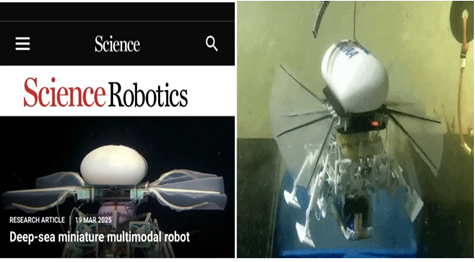 (转载自校新闻网4月2日电)2025年3月22日,CCTV《新闻联播》报道北京航空航天大学机械工程及自动化学院研究团队联合中科院深海所、浙江大学,在技术开发中另辟蹊径,历经6年共同研发出深海小型多模态机器人,该成果汇集了智能驱动、力学及机器人控制等专业方向的交叉研究,为深海探索带来更多可能性。该成果于2025年3月20日发表在国际学术顶刊《科学·机器人》(Science Robotics),并得到新华社、央视《新闻直播间》、人民网、《科技日报》、《中国教育报》等多家主流媒体的报道。