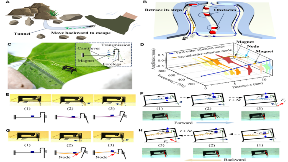 能源与动力工程学院闫晓军教授和刘志伟副教授的研究团队在微型动力领域取得重要进展,成功研发了能够实现快速“倒跑”的机器昆虫BHMbot-B(BeiHang Microrobot-Backward)。该成果结合机械工程、控制工程、电子工程、仿生学和材料科学学科,于2024年12月2日发表在《Science Advances》期刊,题为“Forward and Backward Control of An Ultrafast Millimeter-Scale Microrobot via Vibration Mode Transition”。