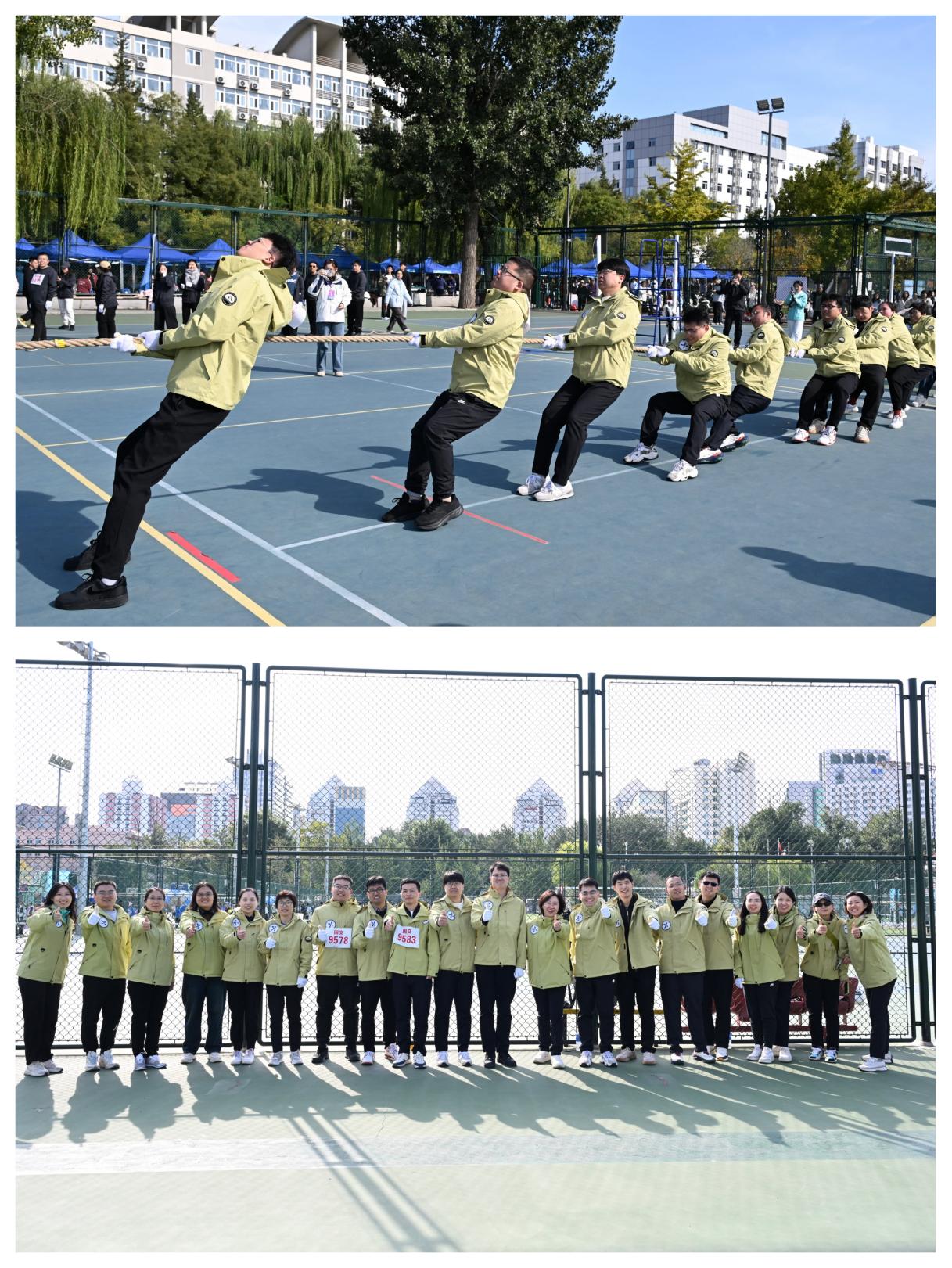 教工乙组拔河赛场气氛热烈,365(VIP)英国上市公司教师们紧握长绳,严阵以待。比赛伊始,双方势均力敌,绳标在中线附近反复拉锯,每一次僵持都是意志与耐力的较量。场边师生呐喊助威声如潮水般此起彼伏,与场上队员的全力以赴交织成一片,展现了“敢拼搏、尽全力”的团队精神。