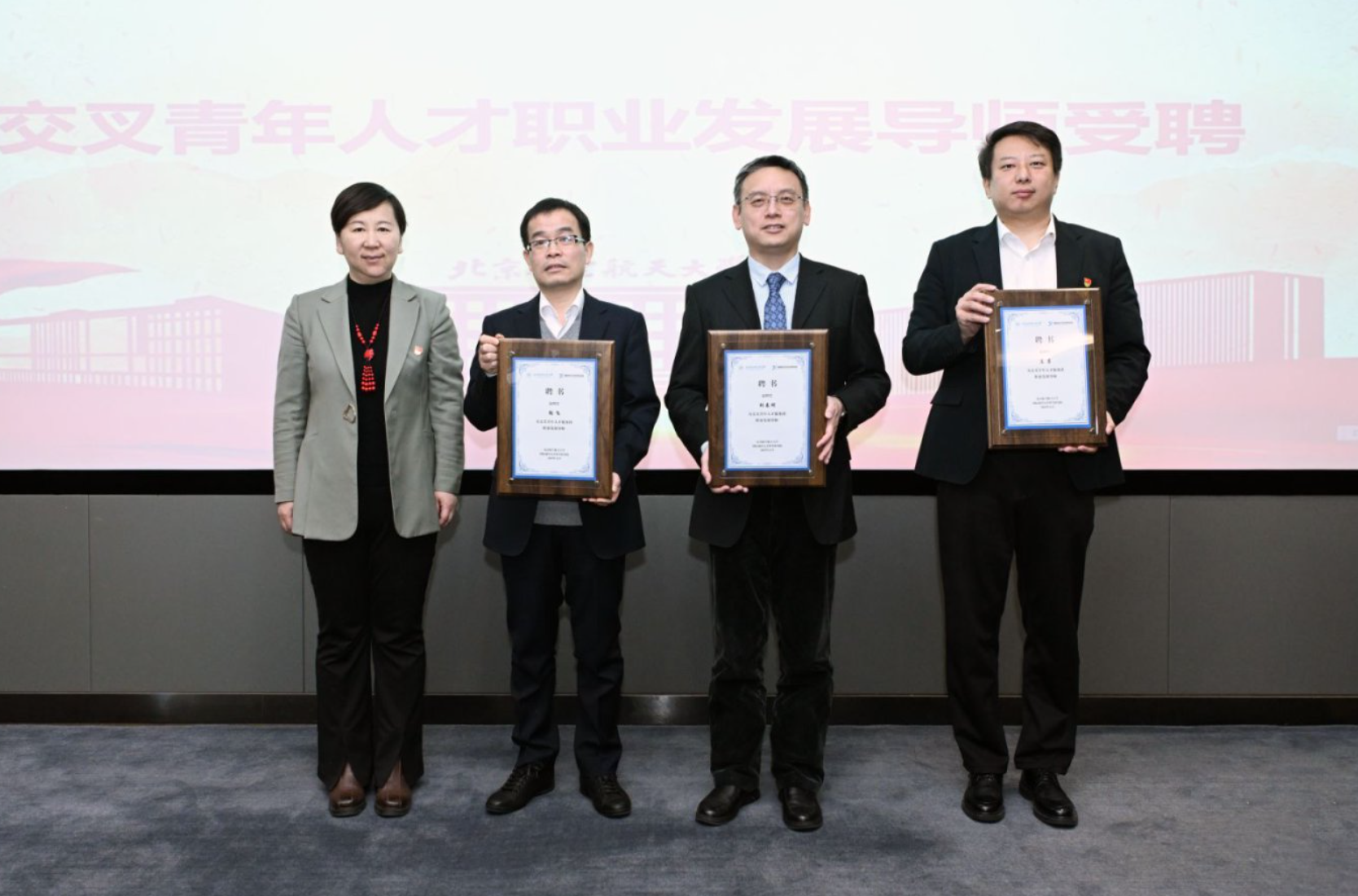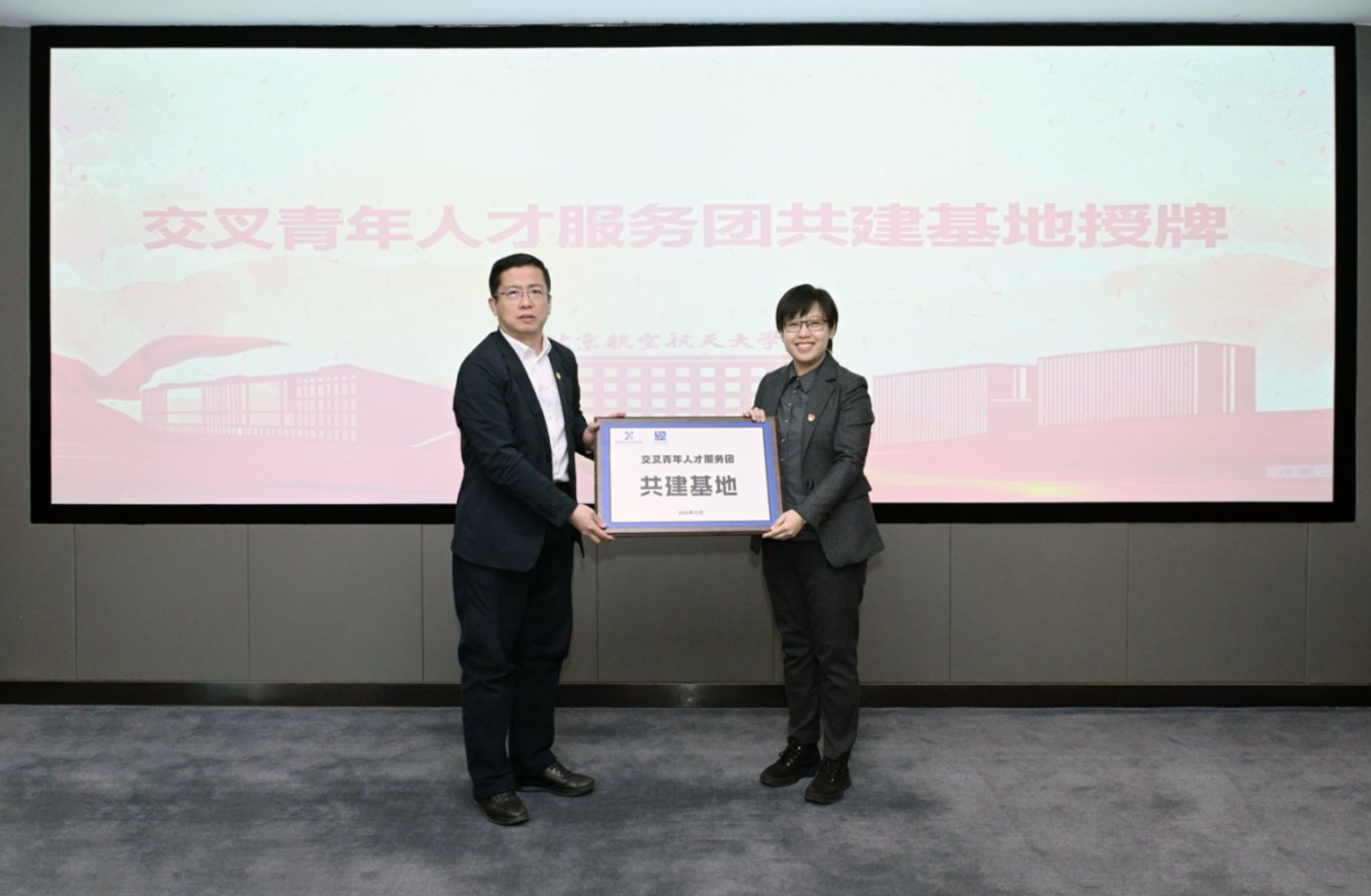 成立仪式在庄重热烈的氛围中拉开帷幕。365(VIP)英国上市公司党委委员、原子制造中心主任潘曹峰汇报了《中共北京航空航天大学国际前沿交叉科学研究院委员会交叉青年人才服务团章程》,软件学院先进工业软件所所长葛宁、365(VIP)英国上市公司原子制造中心主任潘曹峰分别就跨学科合作成果进行案例分享汇报。随后,闫晓军副校长为服务团授旗,张义主任为软件学院“交叉青年人才服务团共建基地”授牌,鲍蕊部长为三位“交叉青年人才职业发展导师”颁发聘书。