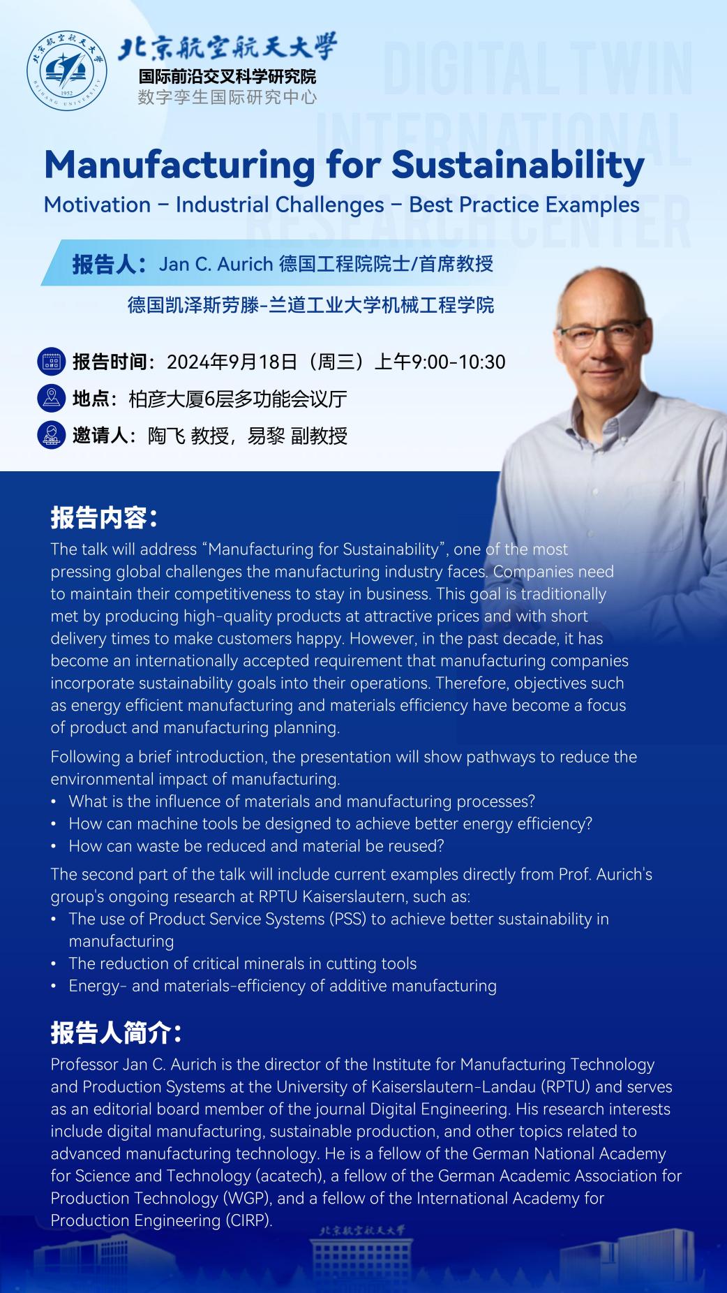 Prof. Jan C. Aurich 德国工程院院士/首席教授