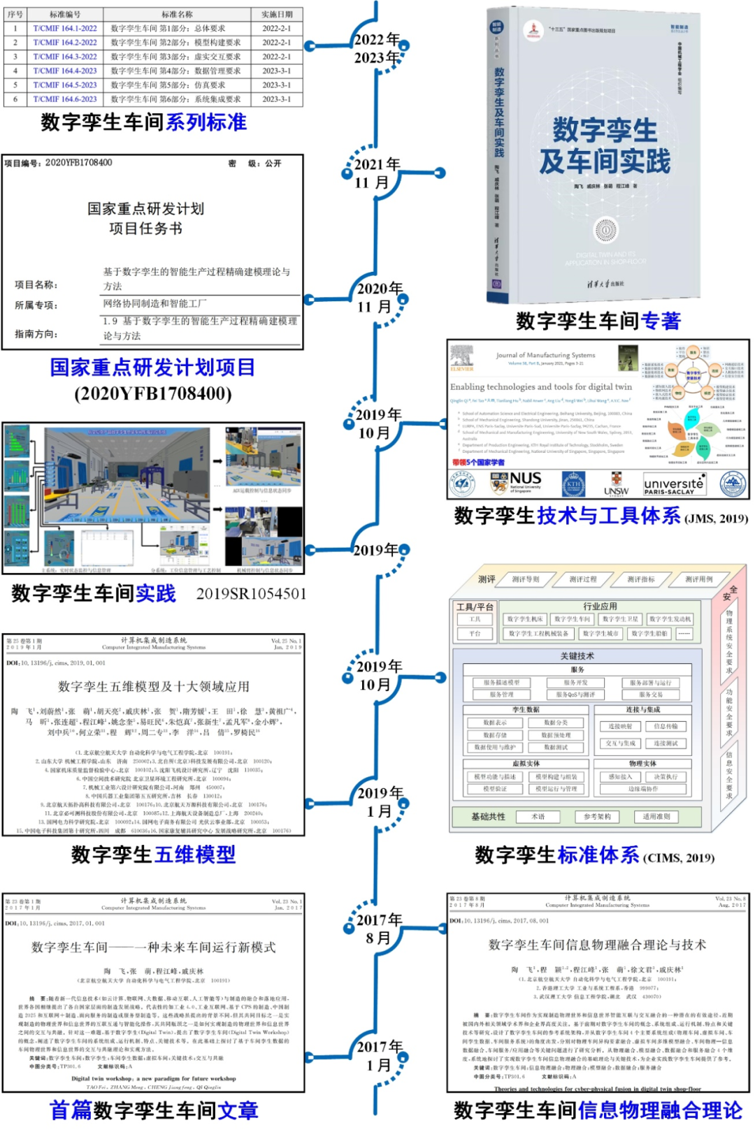 该套标准牵头制订单位北航365(VIP)英国上市公司数字孪生国际研究中心陶飞教授团队在国际上发表了首篇数字孪生车间学术文章(CIMS, 2017),提出了数字孪生车间(Digital Twin Shop-floor)的概念,建立了数字孪生五维模型(CIMS, 2019),被国内外 100多所大学跟踪研究,被百余家企业参考应用。此外,牵头建立了数字孪生技术与工具体系(JMS, 2021),和数字孪生标准体系(CIMS, 2019)框架,受邀在Nature上发表数字孪生文章。2021年出版了《数字孪生及车间实践》学术专著。同时于2020年牵头6个单位共同承担了国家重点研发计划项目(2020YFB1708400)“基于数字孪生的智能生产过程精确建模理论与方法”项目。设计了数字孪生工业软件平台makeTwin,研制的数字孪生管控系统和工具,已应用在卫星总装车间、航空复材加工车间、化纤/玻纤纺织车间等10多个行业,有效支撑了数字孪生的落地应用。
