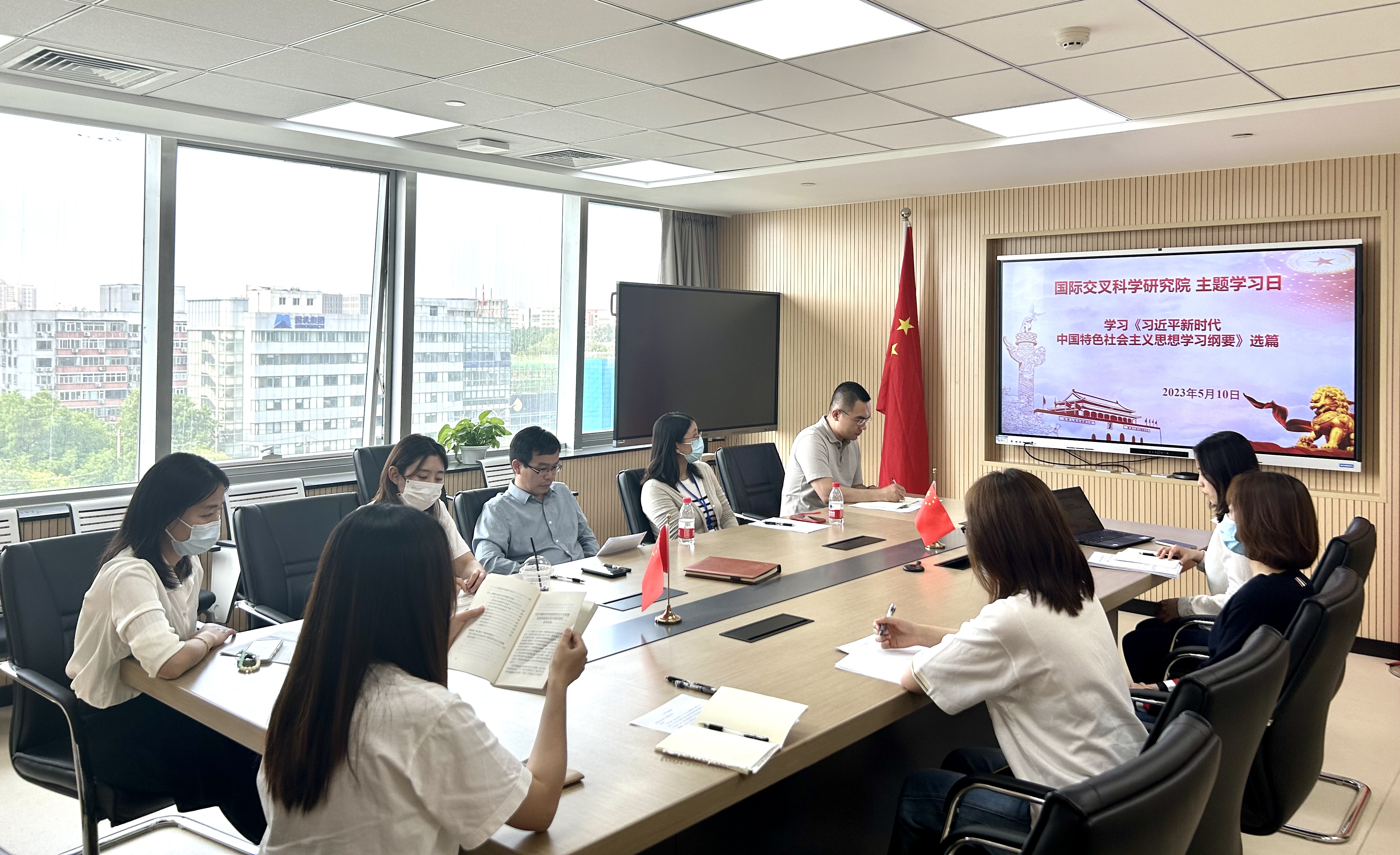 5月10日,国际交叉科学研究院党支部在柏彦大厦601会议室开展学习贯彻习近平新时代中国特色社会主义思想主题教育兼国家安全保密教育学习日活动。会议由常务副院长陶飞主持,全体教职工参会。