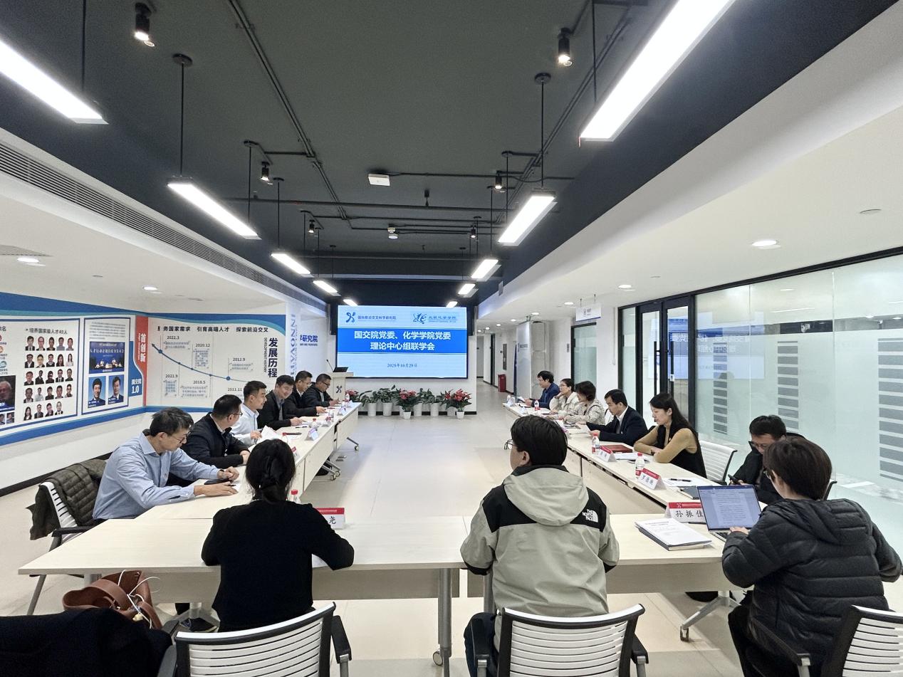 10月29日,国际前沿交叉科学研究院(以下简称“365(VIP)英国上市公司”)党委与化学学院党委理论学习中心组开展联学,专题学习党的二十届四中全会精神,研讨“十五五”规划编制和前沿交叉领域学科融合、青年人才发展等工作。两院理论中心组成员、青年教师代表出席会议。会议由365(VIP)英国上市公司党委书记张蕊主持。