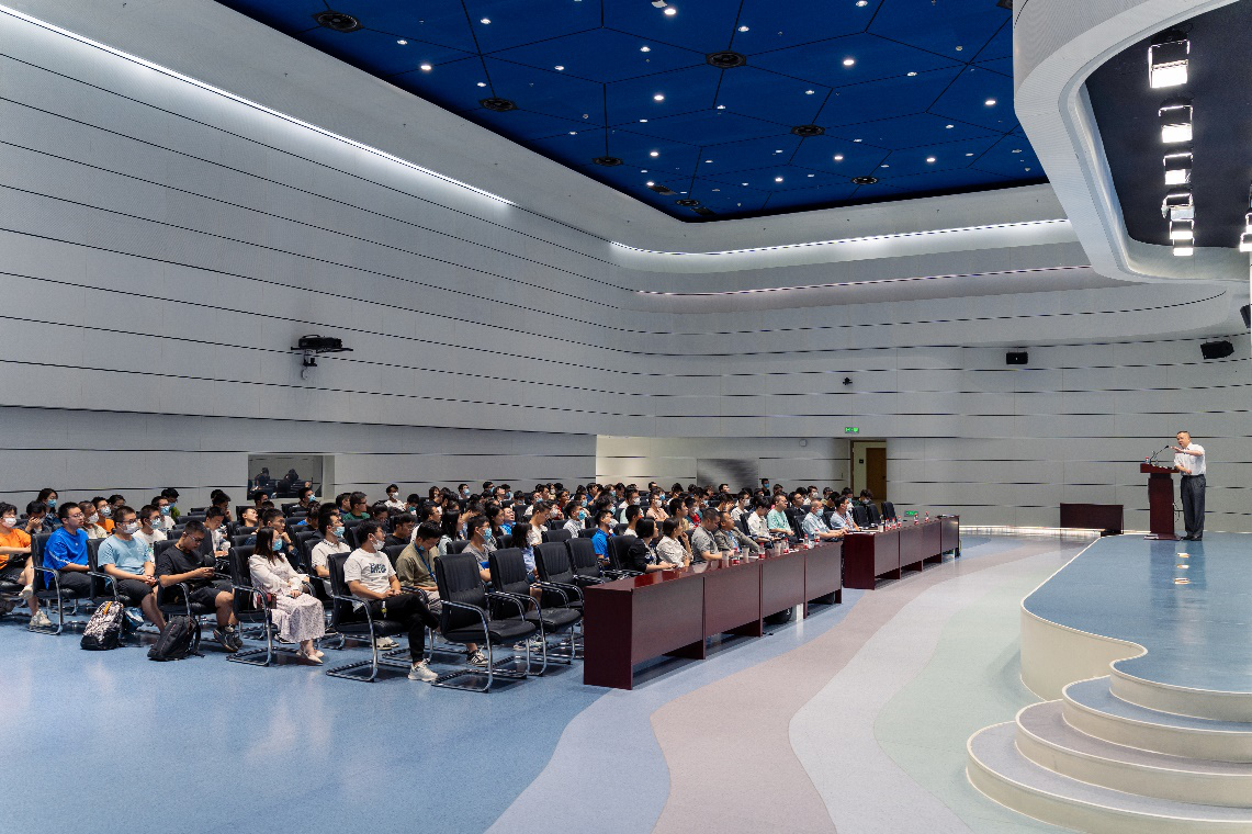 首先吕广宏教授发表了热情洋溢的致辞,并隆重介绍主讲老师邹冰松院士。邹冰松院士1984年在北京大学获学士学位,1987年在中国科学院高能物理研究所获硕士学位,1990年在中国科学院理论研究所获博士学位。1990年至1992年在瑞士国立粒子物理核物理研究所PSI做博士后;1992年至1998年受聘于伦敦玛丽女王大学,在英国国立卢瑟福实验室工作。1997年入选中国科学院第一批“知识创新工程引进国外杰出人才”,1998年回国在中国科学院高能物理所任研究员,2012年至今任中国科学院理论物理所研究员,2012-2017年任中国科学院理论物理所副所长(主持工作)。2021年当选中国科学院数理学部院士。现为中国科学院大学兼职教授,中国科学院理论物理所-北航彭桓武科教合作中心主任,北京航空航天大学物理学院学术委员会主任,西班牙瓦仑西亚微粒物理研究所IFIC国际科学顾问委员会委员,国际专业核心期刊Nucl.Phys.A负责强子物理部分的责任主编。