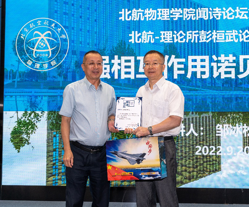 2022年9月20日晚19:00,由北航物理学院主办、彭桓武科教合作中心承办的“闻诗论坛第十一讲暨北航-理论所彭桓武论坛第一讲”顺利举行。本次论坛邀请到中国科学院院士、中国科学院理论物理所研究员、中国科学院理论物理所-北航彭桓武科教合作中心主任邹冰松院士作为主讲人,为师生们带来了题为“强相互作用诺贝尔奖漫谈”的学术报告。北航物理学院院长吕广宏教授为本次论坛的主持人。